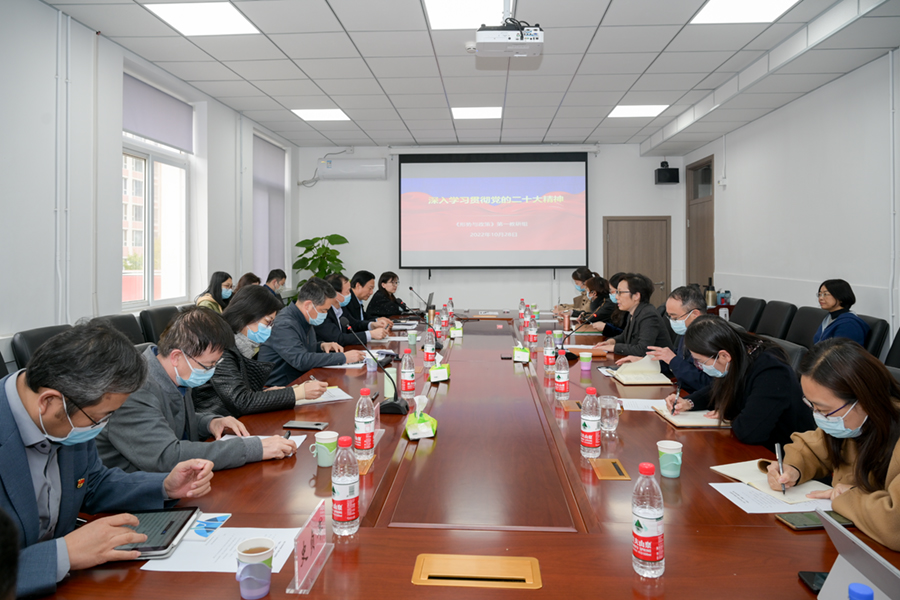 2022年10月28日下午,学校举行形势与政策课“党的二十大精神”专题教研组集体备课会,深入学习宣传贯彻党的二十大精神,进一步推动习近平新时代中国特色社会主义思想“三进”工作。校长王稼琼,党委副书记、纪委书记郭海,党委副书记文海涛,副校长赵鹏,党委常委、党委组织部部长兼党委统战部部长史贞军与澳门六合彩官网资料 领导班子成员、专题教研组任课教师、各教研部负责人一起集体备课。澳门六合彩官网资料 党委书记孙冬梅主持备课会。